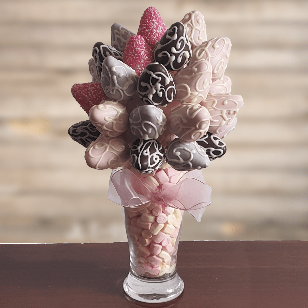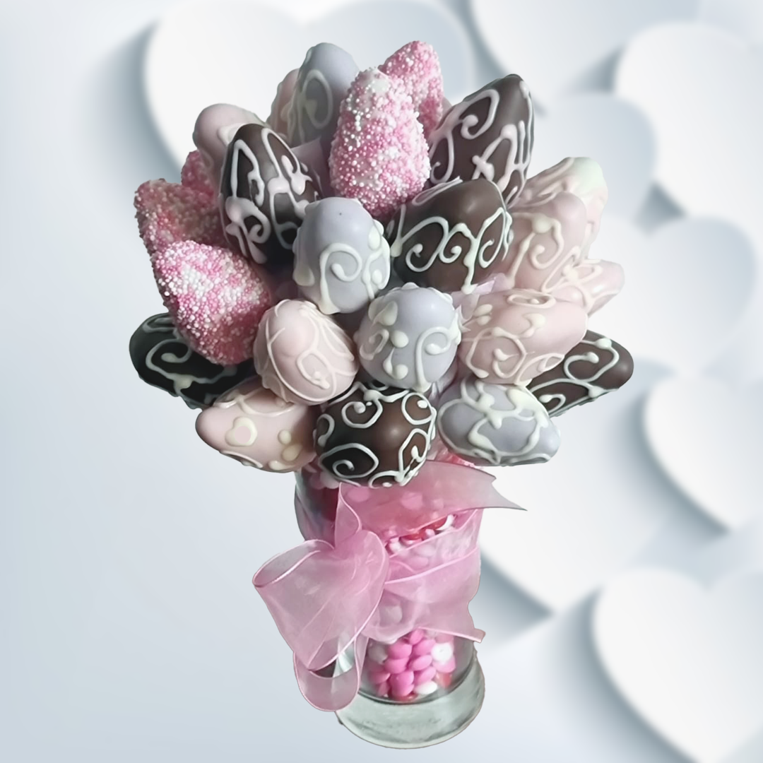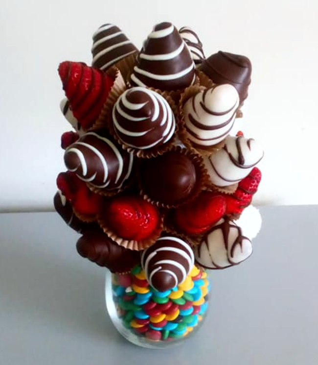 Fresas orgánica con y sin cobertura de chocolate bitter, finamente adornadas