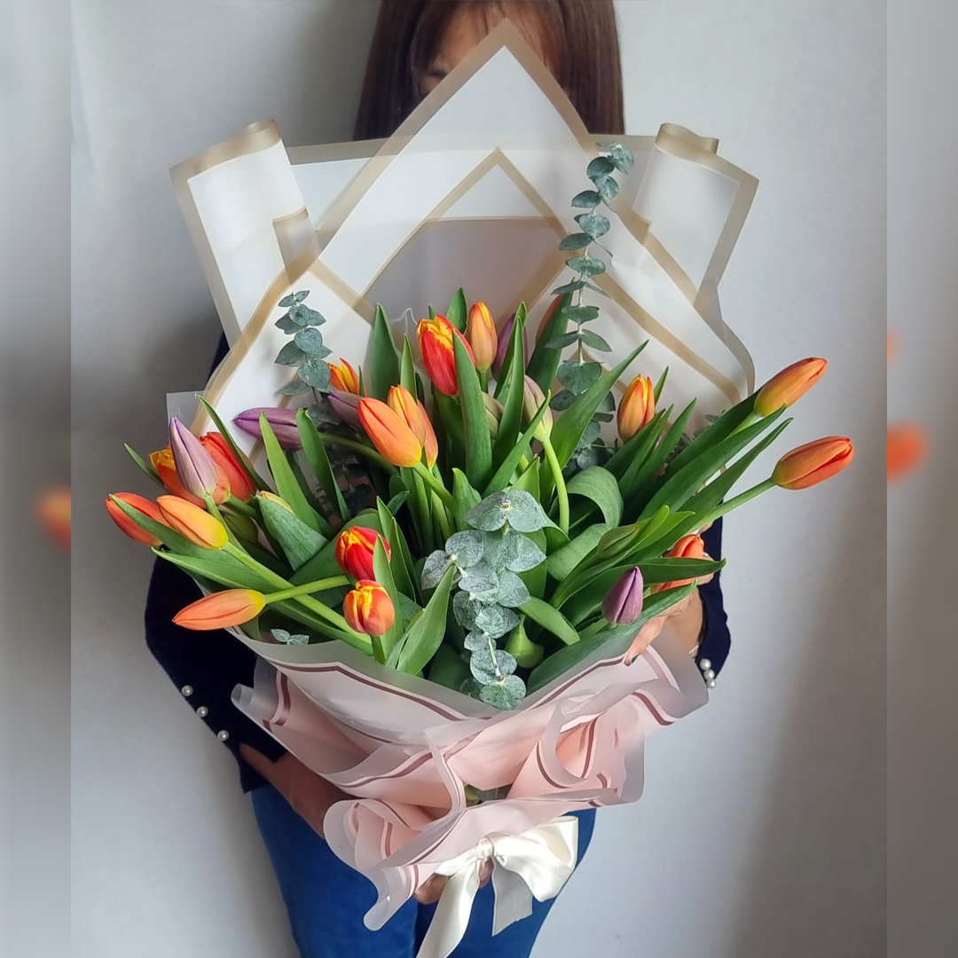 Exquisito bouquet de 20 / 30 frescos tulipanes compuesto de: