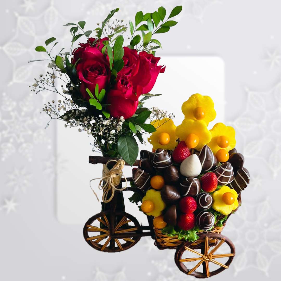 Fresas orgánicas cubiertas o no de chocolate bitter, con elegantes diseños, piña, aguaymanto, y manzana